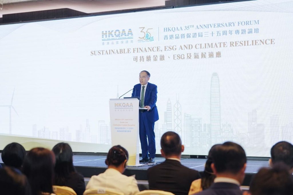 可持续发展组参加香港品质保证局35周年庆暨论坛2024年10月19日 首页 绿色和可持续发展 可持续发展组参加香港品质保证局35周年庆暨论坛 2024年10月18日,我会参加了香港品质保证局(港品局)在香港JW万豪酒店举行的35周年庆典暨论坛活动。此次活动汇聚了来自可持续发展和 ESG 领域的众多专家和行业领袖,旨在探讨如何推动绿色和可持续金融的发展。代表团由副秘书长孙洋带领,可持续发展组的张澎和战伟随行出席。港品局陈沛昌总裁、梁霭怡总监对中投会的到来表示热烈欢迎。上图分别是陈总、梁总与我会同事合影。 本次论坛的主题是“可持续金融、ESG及气候适应”,围绕如何将绿色发展理念融入金融体系展开深入讨论。港品局主席何志诚先生致欢迎辞,他回顾了港品局35年来为提升香港企业质量管理体系和推动可持续发展的贡献。 随后,香港特别行政区政府财经事务及库务局局长许正宇先生致辞,介绍了香港政府在促进绿色金融和应对气候变化方面的政策举措。 联合国前秘书长、现任全球绿色增长研究所总裁潘基文先生通过视频发表了主题演讲,重点阐述了全球社会应如何应对气候变化及推动可持续发展的具体措施。他呼吁各界加强合作,共同为实现《巴黎协定》目标作出努力。 论坛的另一重要环节,港品局与福建省市场监督管理局签署了战略合作备忘录。双方将集中力量推动绿色发展、质量管理等领域的合作。 作为论坛的亮点之一,绿色和可持续金融大奖颁奖典礼也隆重举行。颁奖嘉许了在推动绿色金融方面表现突出的发行人和服务机构,包括中国建设银行、招商永隆银行等多家机构,表彰了它们在推动绿色金融创新及支持可持续项目中的积极贡献。 论坛和颁奖典礼之后,设置了联谊和经验分享环节。其中,ESG Connect 计划成为焦点,来自各界的专家与代表分享了在推动ESG理念和实践方面的成功经验,探讨了未来合作的机会和挑战。 活动期间,港品局的梁霭怡总监和黄影虹经理与我会代表张澎和战伟进行了深入交流,沟通讨论双方在绿色发展领域的下一阶段合作。此次港品局35周年庆典暨论坛活动,为区域内的绿色金融发展提供了重要平台。而我会的参与加深了对这一平台的认知,同时为促进更多企业加入可持续进程,获得了最新的发展信息。